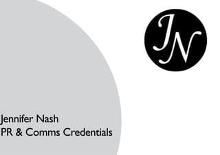 This document provides a summary of Jennifer Nash's PR and communications credentials and experience. She has extensive experience in PR and communications strategies across multiple industries including property, construction, retail, luxury goods, and non-profits. Her skills include strategic planning, media relations, social media management, event planning, and stakeholder engagement. She has worked with a variety of clients in the UK, US, Africa on projects such as residential and commercial real estate developments, business re-launches, and non-profit initiatives.