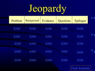 The document appears to be a game of Jeopardy with questions and answers about various topics related to consumerism such as: the rise of department stores with owners like B.A. Rogers and Macy's; how women began working as store clerks; how railroads helped consumerism by transporting goods; Henry Ford being inspired by meat packing plants for the assembly line; and the rise of advertising and muckraking journalists. The final question asks what three minority species Harry Potter called to fight against the Dark Lord Waldemart.