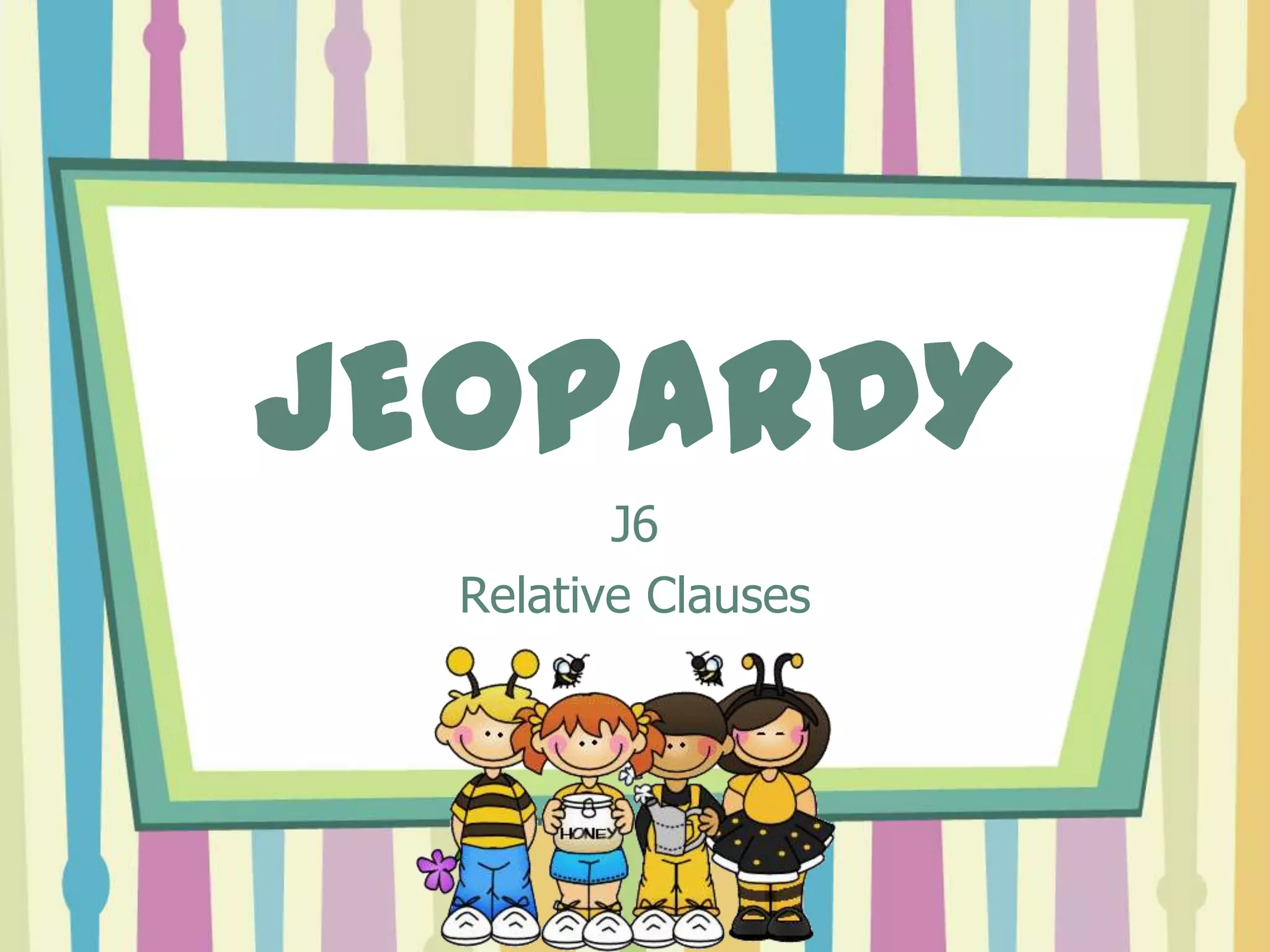 This document contains a Jeopardy-style quiz with questions in various categories and points values. It provides answers to the questions in short sentences or phrases identifying people, places, things, or details requested in the prompts.
