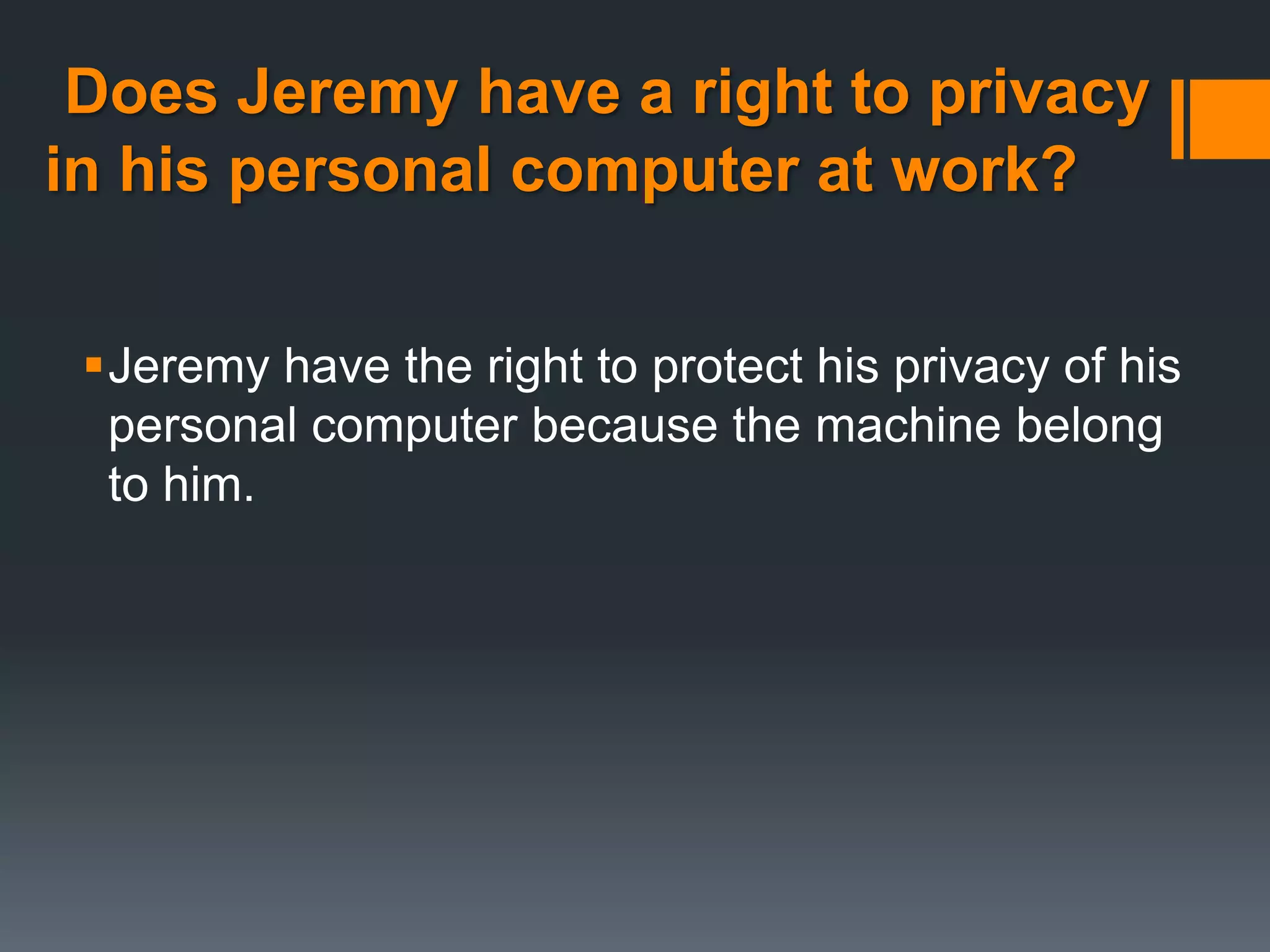 Jeremy works for a government employer and uses his personal computer at work. While the employer has a policy prohibiting personal internet usage, Jeremy has been visiting pornographic websites. This could expose the employer to liability for sexual harassment if a colleague complains. As a government employee, Jeremy has some expectation of privacy for personal belongings at work, but the employer also has rights to monitor electronic communications and search without a warrant if policies are violated or laws broken. The employer should consider blocking pornographic sites and prohibiting personal computer use at work to prevent these issues.