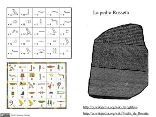 http://es.wikipedia.org/wiki/Jeroglifico http://es.wikipedia.org/wiki/Piedra_de_Rosetta Els