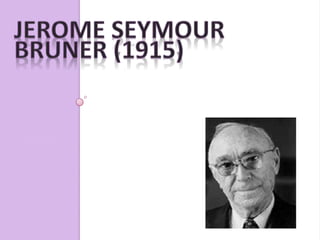 Το παιδί δενείναι μικρογραφία του ενήλικα. Κάθε περίοδος της ζωής του έχει τα δικά της χαρακτηριστικά που μεταβάλλονται και ενσωματώνονται στις γνωστικές δομές των μεγαλύτερων ηλικιών.Η ΘΕΩΡΙΑ ΤΟΥ BRUNERΟι εργασίες του αναφέρονται:στην κοινωνική και βιολογική θεμελίωση της εκπαίδευσης στη νοητική ανάπτυξη των παιδιών σε θέματα σχετικά με τη μάθηση, το Αναλυτικό πρόγραμμα και τη διδασκαλία Διατύπωσε απόψεις που προκάλεσαν σημαντικές αλλαγές στο σχολικό πρόγραμμα και τη διδασκαλία.« Ένα μάθημα μπορεί να διδαχθεί αποτελεσματικά σε οποιοδήποτε παιδί, άσχετα από το στάδιο ανάπτυξής του, αρκεί να χρησιμοποιηθεί η γλώσσα που αυτό καταλαβαίνει » “The process of education” 1960Η πιο σημαντική θέση του και βασική του διάκριση από τον Piaget.Το παιδί σε κάθε στάδιο της νοητικής του ανάπτυξης αντιλαμβάνεται και εξηγεί τον κόσμο με το δικό του τρόπο. Αποτελεί λοιπόν καθήκον του δασκάλου να εντοπίσει τον τρόπο αυτό και να τον χρησιμοποιήσει για να παρουσιάσει στο μαθητή αυτό που θέλει να διδάξει. τα γνωστικά αντικείμενα πρέπει να παρουσιάζονται στο μαθητή με τρόπο απλό και συμβατό με τις μαθησιακές του δυνατότητες. Αυτή η διαδικασία διευκολύνει τη μετέπειτα ανάλυση και εμβάθυνση του γνωστικού αντικειμένου.