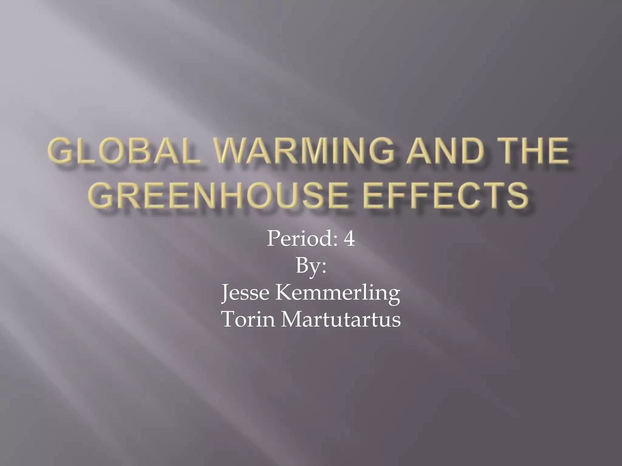 The document discusses global warming, the greenhouse effect, and climate change. It explains that greenhouse gases trap infrared radiation emitted from the Earth's surface, causing the atmosphere to warm. Increased greenhouse gases from human activities like burning fossil fuels are enhancing the natural greenhouse effect and leading to increased global temperatures, which is causing climate change effects like rising sea levels and more extreme weather. While some argue global warming is natural or not caused by humans, the document expresses the opinion that it is both a natural phenomenon and exacerbated by human pollution and greenhouse gas emissions.
