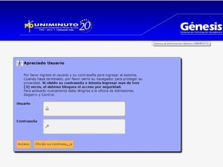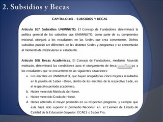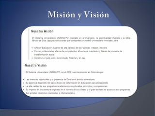 The document contains links to pages on the Universidad Minuto de Dios website about its mission, vision, and quality. The first link goes to a page describing the university's mission and vision. The second link is a test link that redirects to a page containing documents about the university's mission, vision, and quality standards.