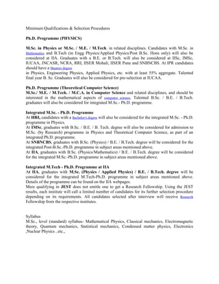 The Joint Entrance Screening Test (JEST) is conducted by 21 premier institutes in India to select candidates for PhD programs in physics and theoretical computer science. JEST scores are an important part of the selection process. Candidates with an MSc in physics or related fields can apply. Some institutes also accept applications from talented graduates with BE, BTech or BSc degrees for integrated MS-PhD programs. Selection is based on JEST scores and further interviews at each participating institute.