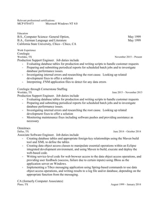 Josh Hanz is a software developer from Plano, TX with over 10 years of experience in Java, C++, SQL, Oracle, and various operating systems. He has worked for companies such as Corelogic, Omnitracs, and CA (Computer Associates) as a production support engineer, associate software engineer, and support engineer. Hanz has a B.S. in Computer Science and B.A. in German Language and Literature from California State University, Chico.