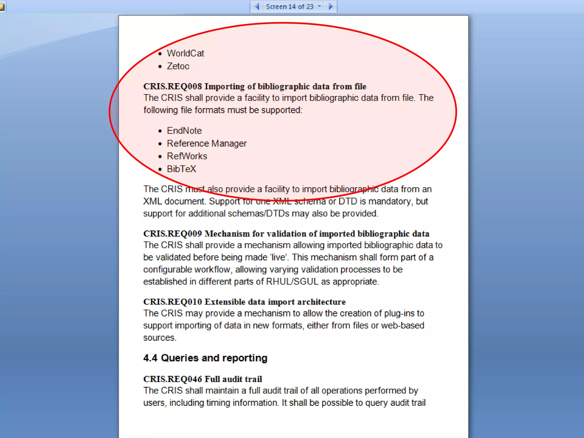 The document discusses researchers' preferences and needs for bibliometric data and research information systems. It finds that researchers value abstract and index databases to aid in identifying articles to cite and for horizontal browsing. Current systems have difficulties providing accurate publication data for institutions. An ideal system would interface with libraries and contain full publication data, citation information where needed, and support depositing research outputs to raise individual profiles. Such systems can facilitate the REF submission process and benchmarking while reducing manual data entry.