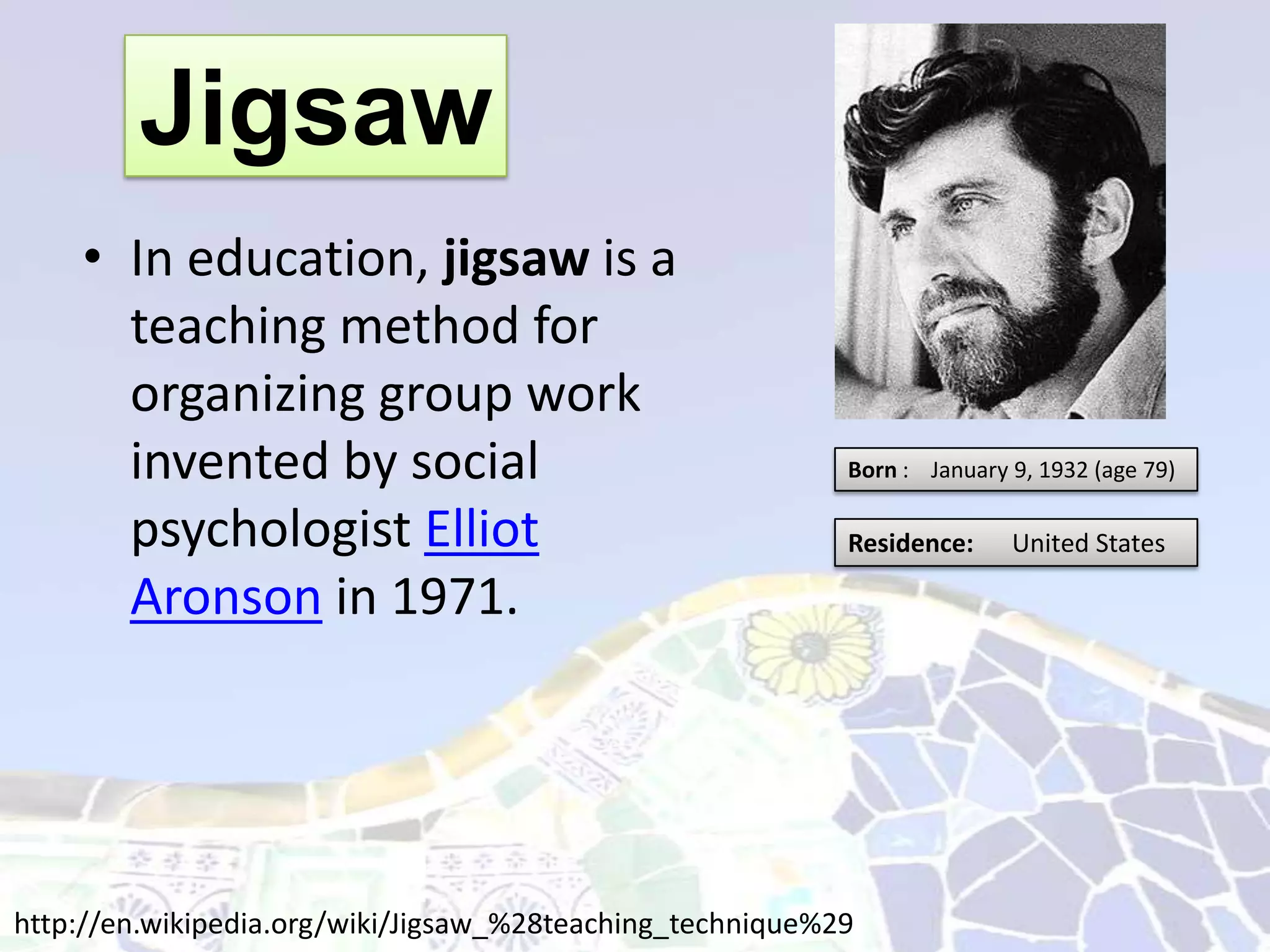 The jigsaw technique is a teaching method invented by Elliot Aronson in 1971 where students are divided into groups and each student is assigned a subtopic to learn. Students then join "expert" groups with students from other home groups learning the same subtopic. After researching their subtopic, students return to their home groups to teach their peers what they have learned. The benefits of this technique include that the teacher is not the sole provider of knowledge, it is an efficient way for students to learn, and it promotes accountability and interaction among peers during the learning process.