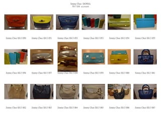 The document appears to be a goods order proposal from Luciano Jewellery Co. Ltd. in Hong Kong to IGFD GRUPPO S.R.L. in Italy. It contains over 70 pages of photos and specifications of Jimmy Choo women's shoes and accessories for the Spring/Summer 2013 collection, including materials, colors, sizes, quantities, costs and delivery dates. Each style is listed with a product code, description, photo, and order details.