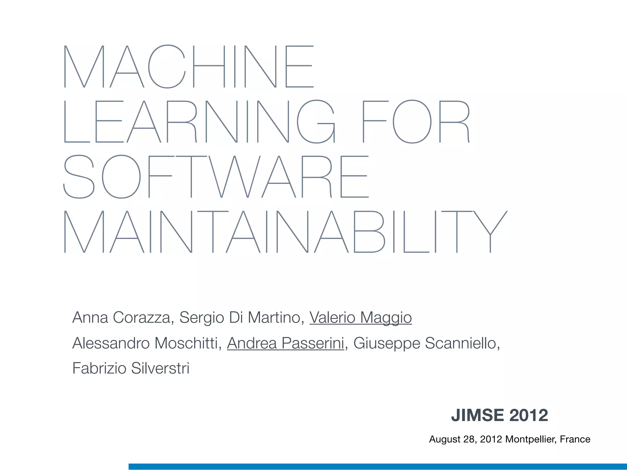 The document discusses the application of machine learning techniques in software maintenance, emphasizing the importance of understanding software artifacts and reducing maintenance costs. It outlines various machine learning approaches for analyzing source code and detecting code clones, particularly through the use of kernel methods that facilitate the classification and clustering of software components. The case study on code clones highlights the use of abstract syntax trees and program dependency graphs to identify duplicated code fragments, thus improving software maintainability.