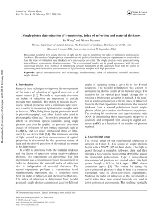 This article describes two experiments using single photons to determine the index of refraction and thickness of a microscope coverslip. In the first experiment, transmission of single photons through the coverslip at various angles is measured to determine the index of refraction by fitting the data to Fresnel equations. In the second experiment, photons pass through the coverslip in an interferometer to measure changes in optical path length, allowing the thickness to be calculated using the known index from the first experiment. The results from both single-photon experiments agree well with theoretical models.