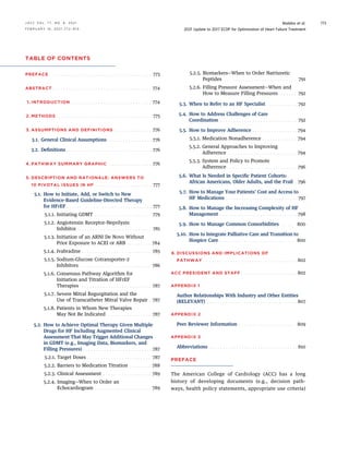This document provides an updated 2021 expert consensus decision pathway for the optimization of heart failure treatment in patients with reduced ejection fraction (HFrEF). It addresses 10 pivotal issues in HFrEF management, including how to initiate and titrate new guideline-directed medical therapies such as angiotensin receptor-neprilysin inhibitors, ivabradine, and sodium-glucose cotransporter-2 inhibitors. The pathway provides guidance on achieving optimal medical therapy, assessing patients with imaging and biomarkers, improving medication adherence, managing special populations and comorbidities, and integrating palliative care. The update aims to streamline care and realize best outcomes for HFrEF patients based on recent therapeutic advances.