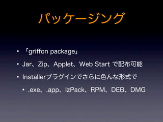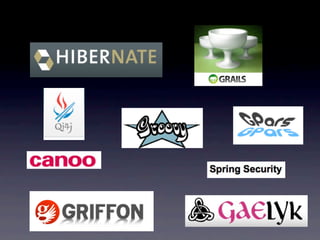The document provides an overview of Groovy and Java code examples for performing common tasks like printing "Hello World", reading files, making web requests, using strings, importing packages, and using Swing/SwingBuilder for GUIs. It also shows examples of using Groovy with Java libraries for Excel files, Ant, and JSON. Additional sections cover parallel processing with GPars, contract programming with GContracts, method chaining, Grails basics, and Gaelyk controllers and views.
