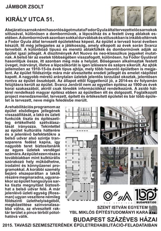 2015. TAVASZI SZEMESZTERÉNEK ÉPÜLETREHABILITÁCIÓ-FELADATAIBAN