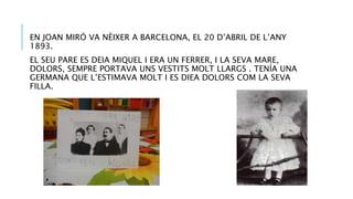 Joan Miró was born in Barcelona on April 20, 1893, to a humble family and showed artistic talent from an early age. After struggling with his family's expectations, he pursued art full-time and became a prominent figure in the art world, notably in Paris, experimenting with various techniques and materials. Miró passed away at 90 in Palma de Mallorca, but is buried in his hometown of Barcelona, leaving behind a legacy of iconic artworks and sculptures.