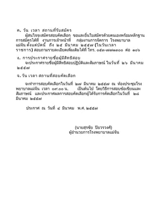 ตาม ประกาศโรงพยาบาลแม่จัน ๒๔ มกราคม ๒๕๕๗ เรื่อง รับสมัคร