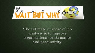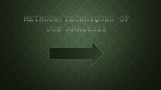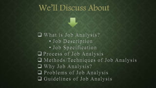 The document focuses on job analysis processes, emphasizing the importance of collaboration among HR managers, workers, and supervisors to ensure effective data collection and job specifications. It discusses the role of O*NET in providing occupational information and outlines the job duties and required qualifications for a sales position. Key skills highlighted include strong communication, adaptability to financial conditions, and necessary certifications.