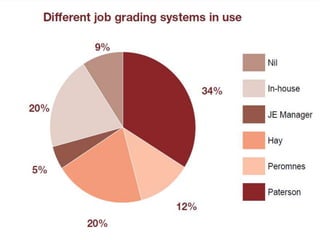 The document outlines a comprehensive training program focused on job analysis, evaluation, and grading processes, emphasizing the importance of systematic approaches in human resources. It details the objectives, methodologies, and frameworks for conducting effective job analyses and evaluations, including various methods such as Hay Group and Peromnes. Additionally, the document addresses best practices, competence assessment, and integration of job data for developing job descriptions and specifications.