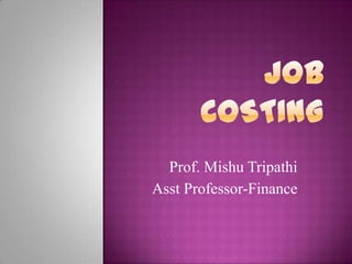 Job costing is a costing technique used when jobs are unique to customer specifications. It involves tracking direct and indirect costs for each job. Job costing is used in industries like construction, shipping, and services where each job differs, to determine the profit or loss of individual jobs and help plan future jobs by comparing actual and estimated costs.