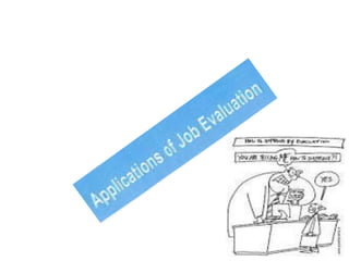 The document outlines job evaluation as a systematic method for assessing the relative importance of jobs within an organization, focusing on understanding job content and organizational context. It provides a structured approach to evaluating jobs based on knowledge required, problem-solving, and accountability, and emphasizes the need for fairness and objectivity in the evaluation process. Key components include methodologies, assumptions, and factors affecting job evaluation, with guidelines to avoid common pitfalls in evaluation practices.