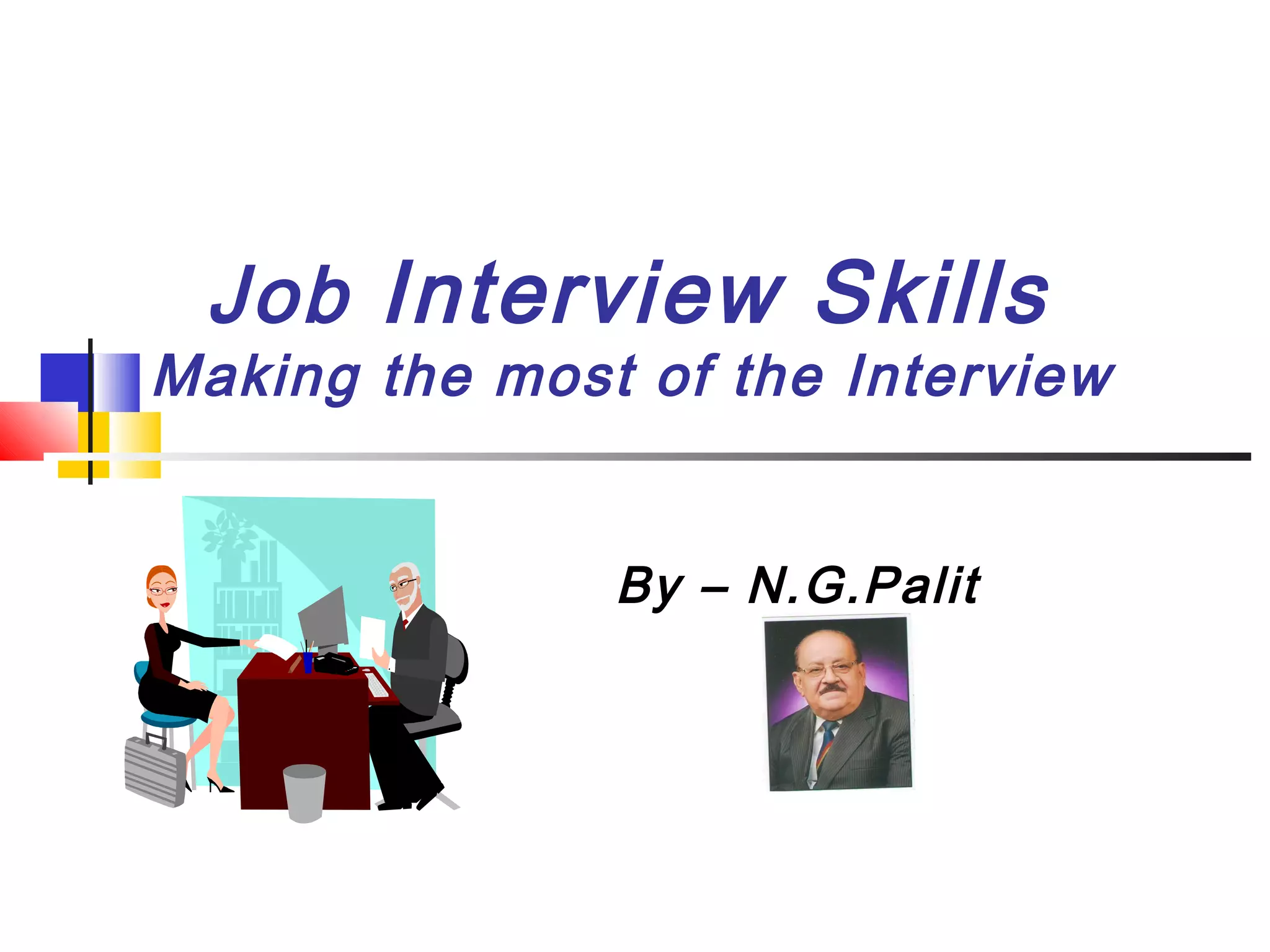 The document provides a comprehensive guide on job interview skills, emphasizing the importance of preparation, self-promotion, and effective communication. It outlines various types of interviews, recommended attire, and key qualities employers seek, along with strategies for dealing with nerves and making a positive impression. It concludes with advice on following up after interviews and learning from the experience to improve future performance.