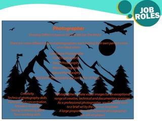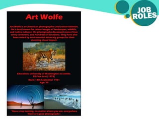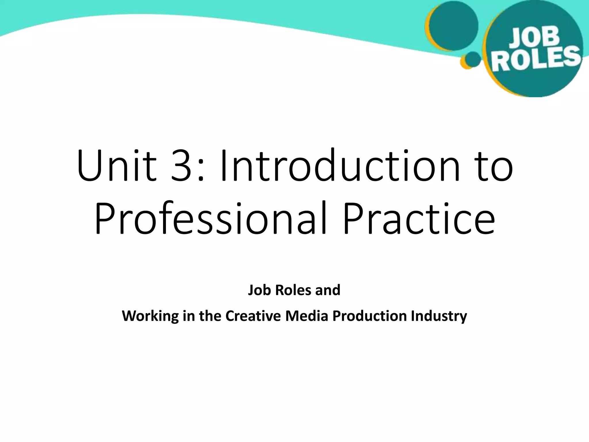 This unit introduces students to career opportunities and professional practices in the creative media industry. Students will research job roles, complete assignments to develop skills like time management and teamwork, and create a five year career plan. They will evaluate their progress throughout the year and identify areas for further improvement.