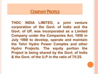 This document presents the results of a study on job satisfaction at THDC India Limited. It finds that good pay is the biggest motivator for employees. Most employees are optimistic about their future success with the company and feel the environment is suitable. The study also found that the company cares about its people and employees are satisfied with working conditions and benefits. Suggestions to improve job satisfaction include more regular feedback between employees and supervisors and improving relationships between coworkers. In conclusion, while employees are satisfied to an extent in their jobs, maintaining a supportive work environment is also important for employee performance.