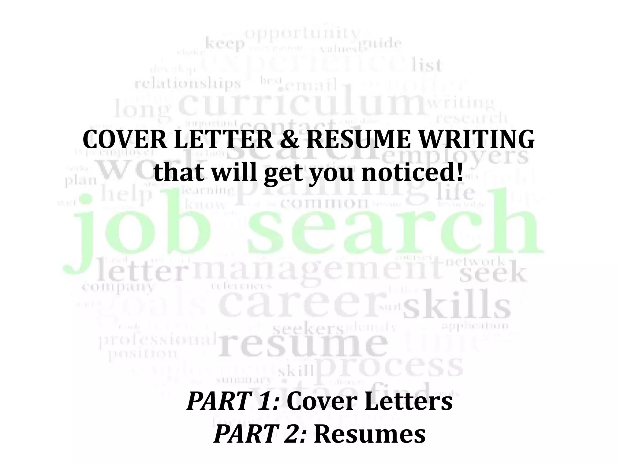 The document provides guidance on writing effective cover letters and resumes. It discusses why cover letters are important, cover letter formatting and components, including hard and soft skills. It also emphasizes that resumes need to grab the recruiter's attention within 30 seconds and highlights resume design, formatting, common sections, and keywords. Students are assigned to create a cover letter mind map and draft a cover letter and resume for a fictional job as an expert.