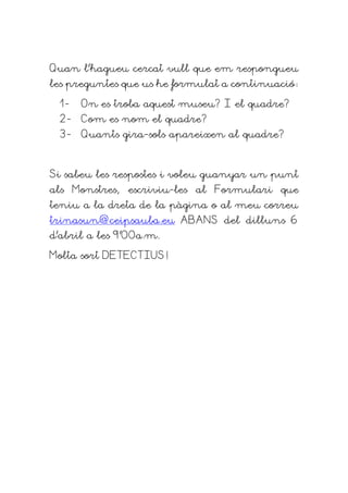 Museu de Vincent Van Gogh. Llegeix el document i segueix les pistes. Clica l'enllaç al Museu virtual i respon les 3 preguntes formulades.