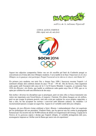 convertissin en el lema dels Jocs Olímpics moderns. I seva també és la frase l'important en els Jocs