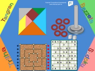 The document refers to Fatorial Consultoria Empresarial, providing insights into the potential challenges and opportunities for businesses. It includes numeric data across multiple slides, likely indicating performance metrics or assessments. Overall, the content promotes the consultancy's objectives and services for business improvement.