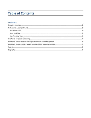 Africa. Under his leadership, MedAssets donates over $1 million annually to charitable causes and supports