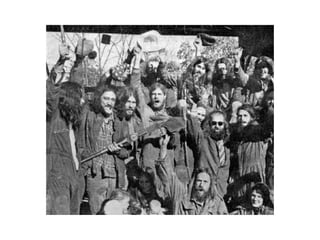 The document discusses the evolution of online media, emphasizing community-driven content and the intersection of personal and professional relationships among various groups. It highlights innovations such as original material, public forums, and live sports webcasts, alongside issues like fair use and civic engagement. The piece advocates for local action and personal empowerment in the face of traditional media and government oversight.