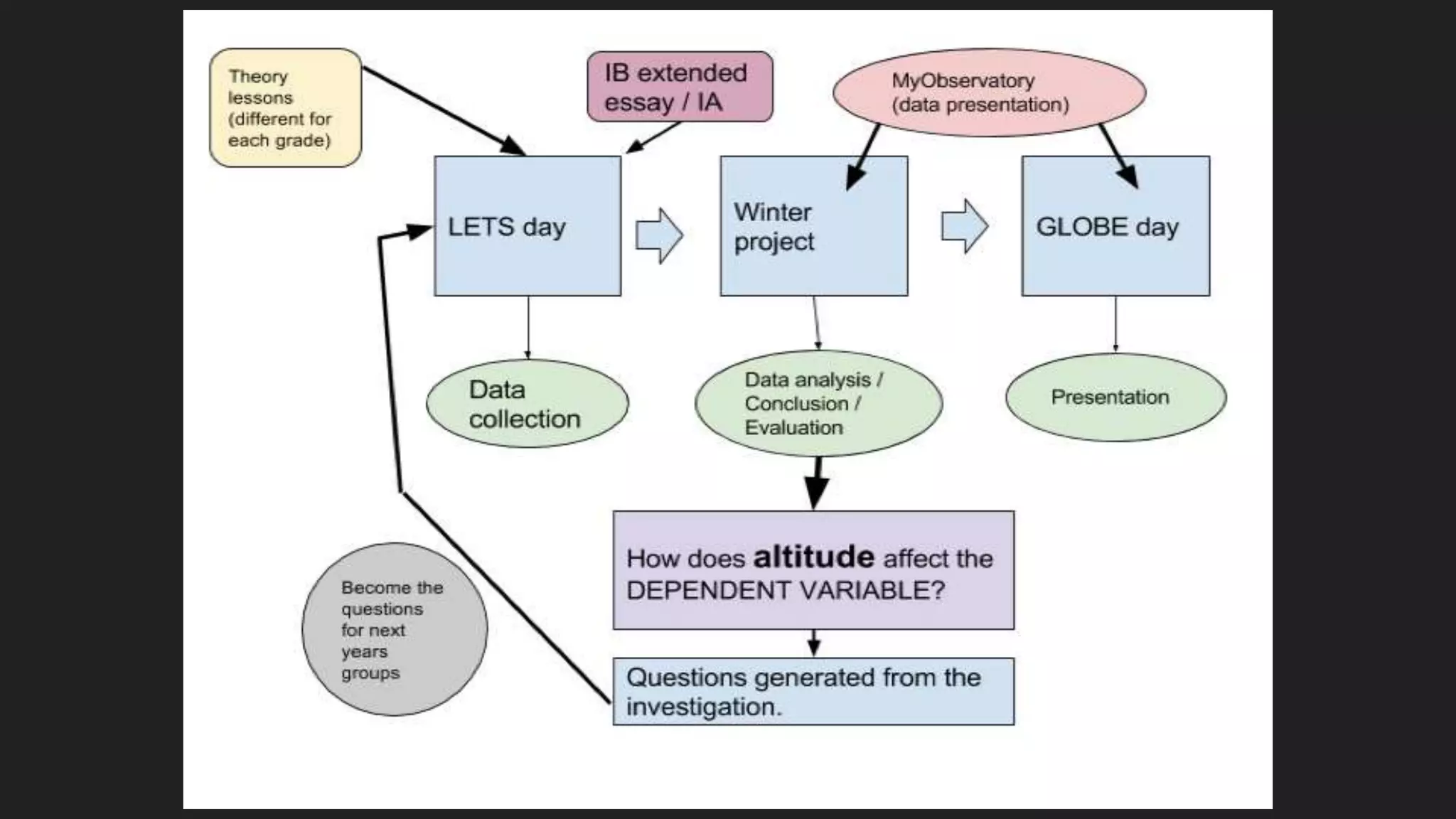 The document discusses the 'Lets Study Leysin' initiative, which is a local citizen science project aimed at studying climate change through ecological observations across an altitude gradient in the Alps. Over 500 students and 30 teachers participate in data collection, revealing relationships between elevation and tree species types, including notable findings about coniferous and deciduous trees. The initiative aims to create bioclimatic transect networks to enhance understanding of ecological adaptations and promote collaborative research for better conservation outcomes.