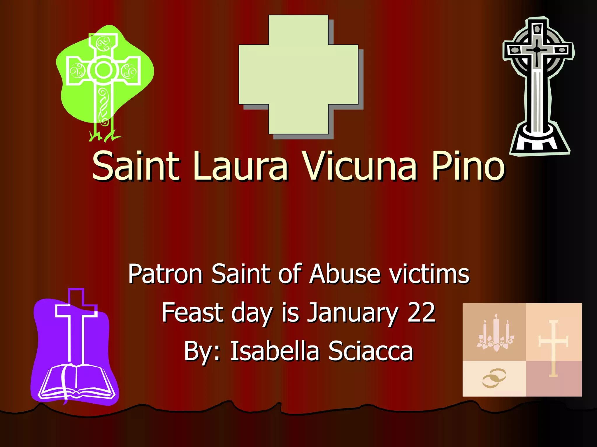 Saint Laura Vicuna Pino is the patron saint of abuse victims. She was born in Chile in 1891 and moved to Argentina with her family after her father died. In Argentina, she suffered abuse at the hands of Manuel Mora, who abused both her and her mother on multiple occasions. Saint Laura ultimately sacrificed her life for her mother, dying of disease at the age of 13 in 1904. She is remembered for enduring cruelty and abuse with compassion.