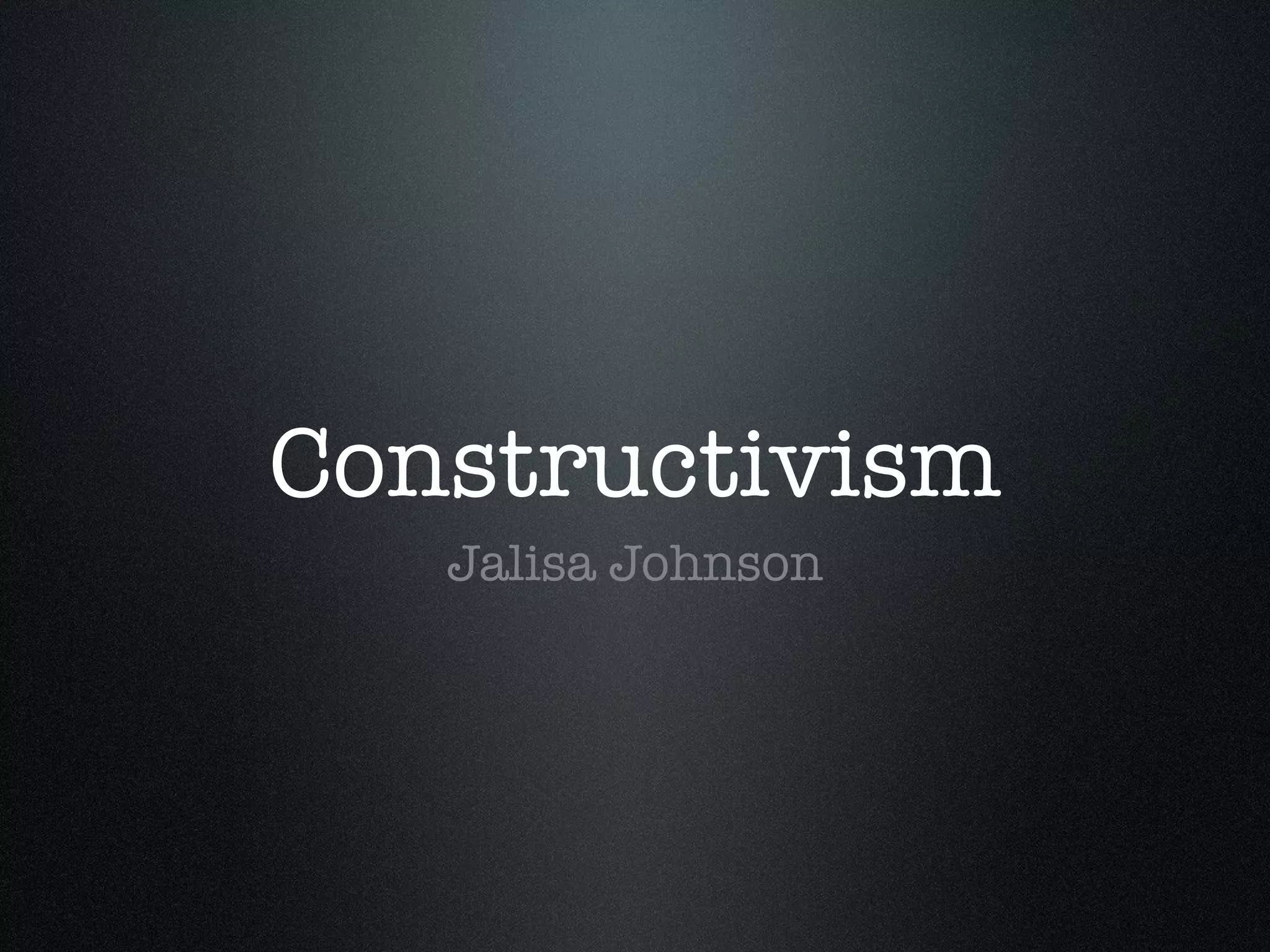 Constructivism is a learning theory that suggests students actively construct their own understanding and knowledge through experiences and reflecting on those experiences. Key aspects include students learning by doing rather than passively receiving information, and the idea that knowledge is constructed rather than innate or passively absorbed. Major advocates include Piaget, Bruner, Vygotsky, and Dewey. In a constructivist classroom, students would interact with knowledge through experimentation, inquiry, and technology to actively build their own understanding.