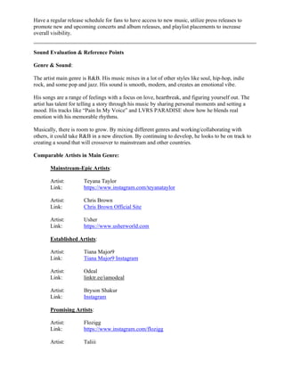 coverage. By following these steps, the artist aims to strengthen his presence, reach more