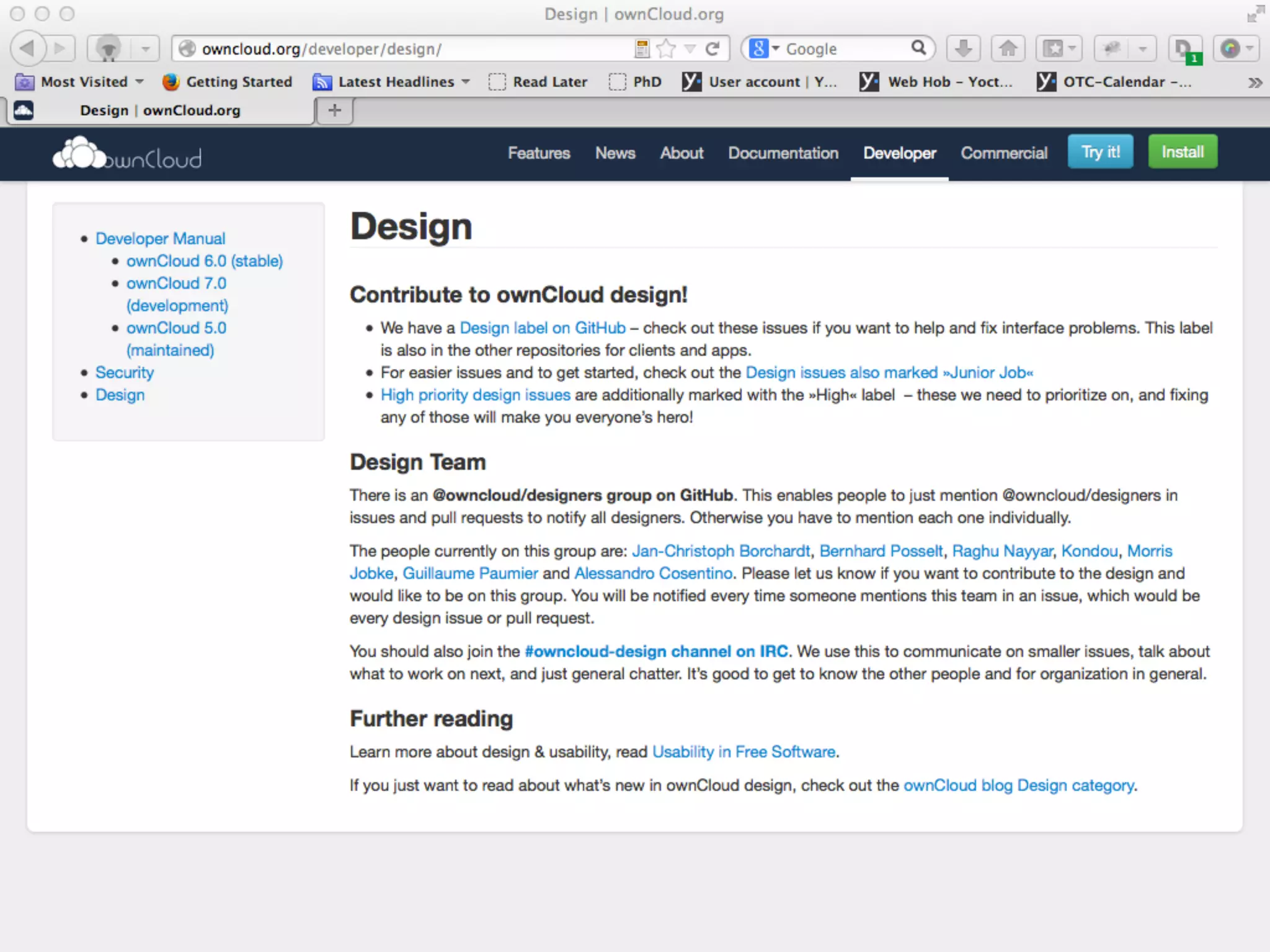 The document discusses the integration of designers within the free and open-source software (FOSS) community, emphasizing the lack of design expertise historically present. It highlights the openness of developers to usability contributions and the need for collaboration between designers and technical teams to enhance user experience. The text also references various sources and initiatives promoting the contribution of usability specialists to FOSS projects.