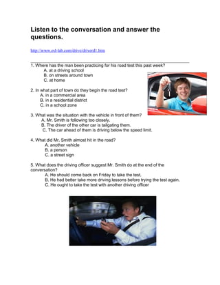 1. Where has the man been practicing for his road test this past week?