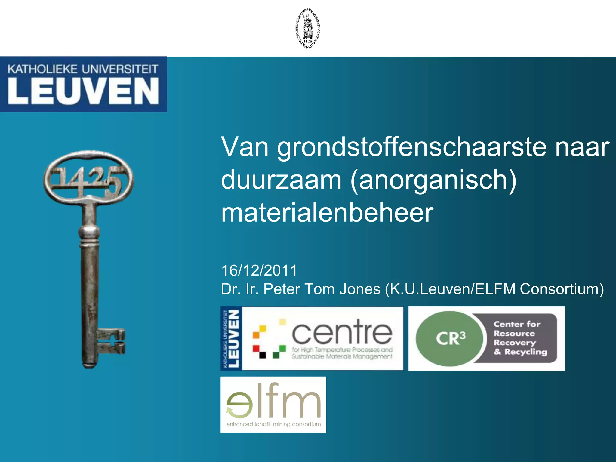 Titel lezing: "Van Grondstoffenschaarste naar duurzaam anaorganisch materialenbeheer"