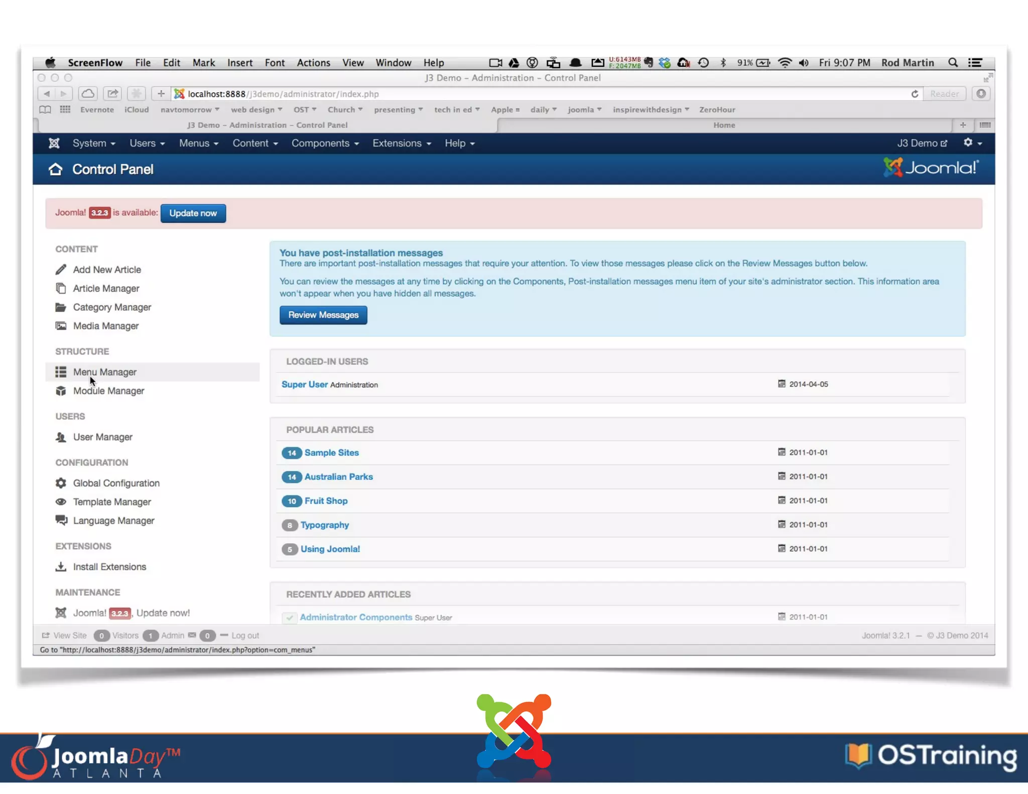 The document provides an overview of the content management system Joomla! and how to use it. It discusses what Joomla is, how to install it, add content through categorizing and formatting articles, and customize the site through extensions and templates. Key aspects covered include the content workflow, popular extensions, template design, and tips for a smooth migration to Joomla.