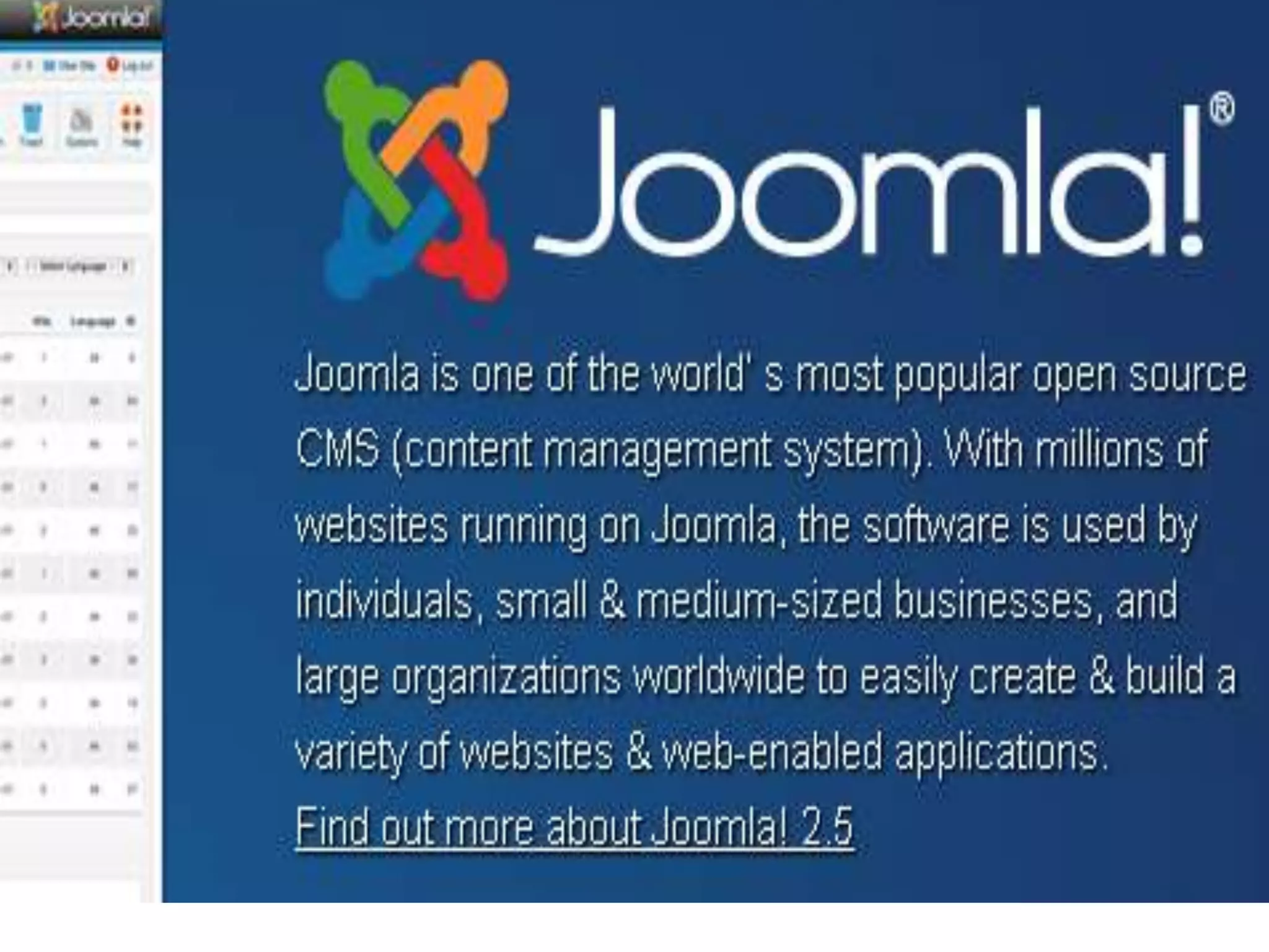 Joomla is a popular open-source multilingual CMS that supports over 64 languages and offers comprehensive features for content and user management, as well as media, menu, and banner management. It includes extensive access control, a frontend editing feature, and a powerful template management system for customizable site design. Additionally, Joomla provides a built-in user registration system, supports multiple authentication protocols, and offers over 8,000 extensions for enhanced functionality.