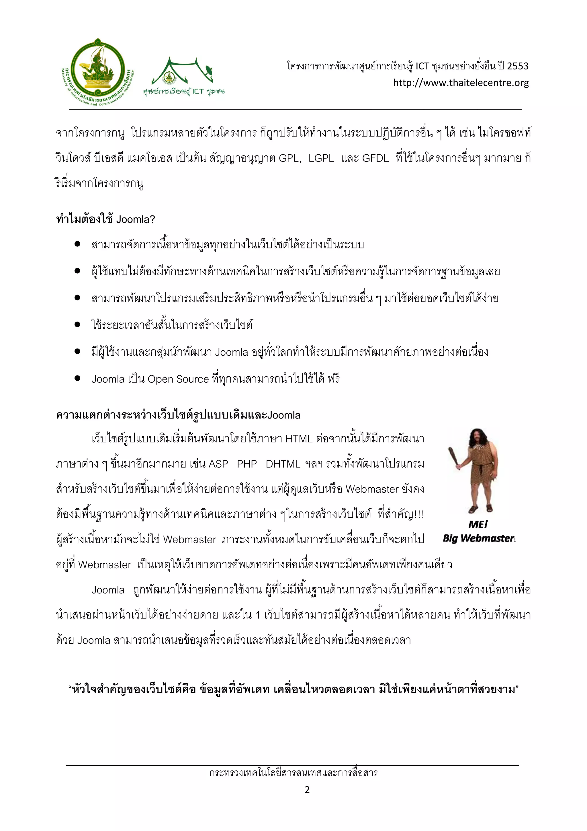 โครงการการพัฒนาศูนย์การเรี ยนรู้ ICT ชุมชนอย่างยังยืนปี 2553