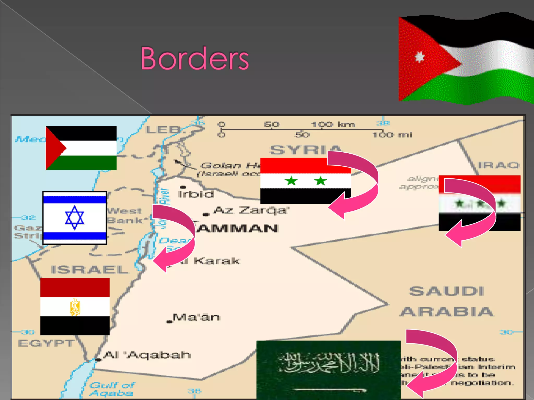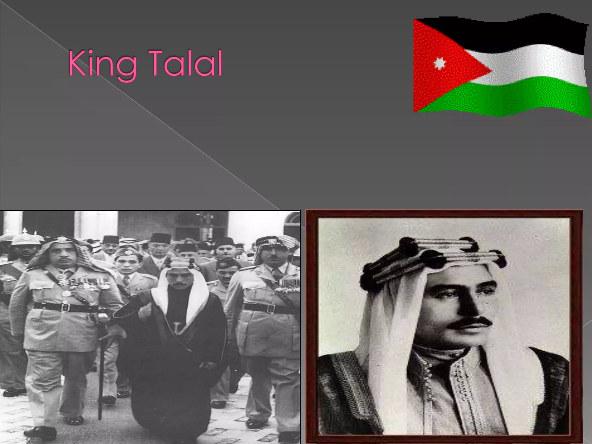 The document presents information about the Hashemite Kingdom of Jordan, including its history, geography, climate, population, government, economy and culture. It provides details on Jordan's flag, national flower, geography, climate, history as a British mandate and independent kingdom. Biographical information is given for King Abdullah II as the current ruler of Jordan.