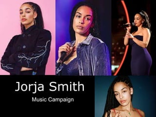 Jorja Smith is a female R&B and pop artist who appeals mainly to 15-25 year old girls. Her music campaign promotes her new album through her website, music video, and album packaging. The campaign stays true to Jorja Smith's natural image and feminist messages, which engages her primarily female audience. All elements of the campaign, including the website, video, and album packaging, feature consistent fonts and styles that match Jorja Smith's rustic R&B sound.