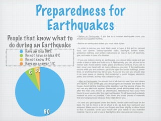 This document discusses earthquake preparedness and risks in Santo Domingo, Dominican Republic. It provides tips on what to do before, during, and after an earthquake. It notes that Santo Domingo's building codes are outdated and have not been revised in 30 years, increasing earthquake risk. It also analyzes Santo Domingo's population density, infrastructure, and recommends updating building codes and enforcing them to increase safety during earthquakes.