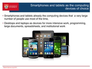 The document discusses jump-starting the European app economy. It summarizes that smartphones and tablets are now the primary computing devices for many people. It then outlines forecasts that predict the app economy will be worth $150 billion by 2017 and $143 billion by 2016. However, these estimates are likely low since app advertising and enterprise apps are emerging. The document then notes barriers in Europe including a lack of support systems for app developers. It proposes addressing this by establishing a training program for developers and entrepreneurs and funding three app innovation hubs in major EU cities to foster mentoring, access to venture capital, and business development support. Financial competitions would also encourage mature app business plans. The proposals aim to create a synergistic ecosystem to trigger innovation