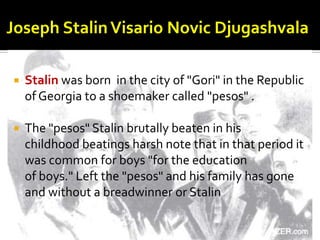 1. Joseph Stalin was born in 1878 in Georgia and grew up in poverty after his shoemaker father left the family.