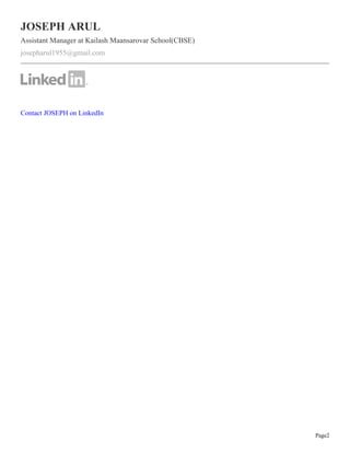 Joseph Arul has worked in education for over 36 years. He is currently the Assistant Manager at Kailash Maansarovar School, a CBSE school, where he has worked since January 2014. Prior to that, from 1977 to 2013, he served as secretary and personal assistant at Holy Cross Mat.H.S. School. He can be contacted via email at josepharul1955@gmail.com or on LinkedIn.