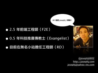This document discusses Yahoo's open APIs and the Yahoo User Interface (YUI) library. It provides examples of how Flickr uses open APIs to return photos in different formats. It also describes some UI components in YUI like buttons, menus, text fields and discusses how YUI is used to build rich interactive applications on the web. The document contains questions about open APIs, YUI library and auto-complete functionality.
